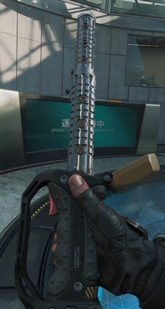 シリーズ定番の近接武器で前作BO6同様の名前になっています。ベータ版ではスタンガンのような警棒みたいな武器でしたが、製品版ではいつもの近接武器を出してくれました(よかったw)。前作BO6同様に近接武器枠に入っているのでいつでも出すことができ、移動速度が速いので移動用武器として使うことができます。