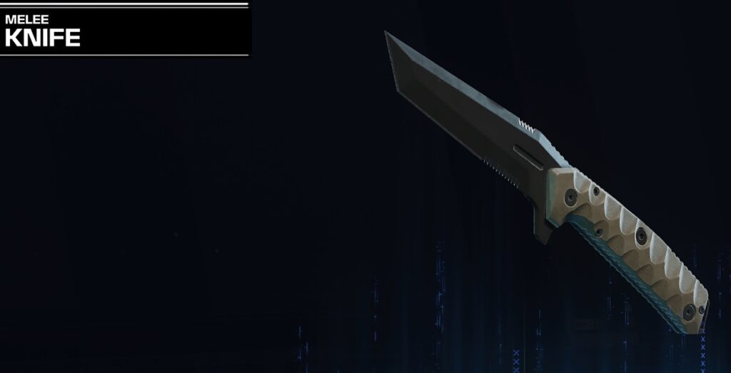 前作BO6同様にサブ武器とは別枠で持つことができる武器になっています。出し方としては近接攻撃ボタンを長押しで取り出すことができ、シリーズ定番ですが全武器TOPのスピードで移動することができます。逆に今までのシリーズと違ってすぐに取り出しにくいのが弱点です。