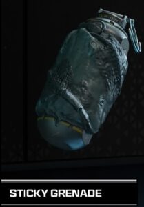 「フラグ」同様シリーズ定番の粘着爆弾で、投げた後地面や壁に引っ付いてから1.5秒後に爆発します。「フラグ」同様遠くに投げれますが、転がらずにその場で貼り付くので「フラグ」程遠くの敵を倒すことは難しいです。