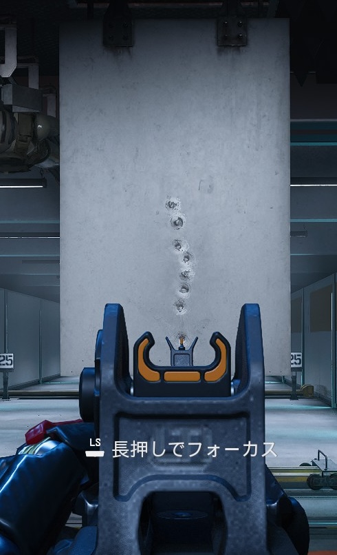 射程距離48mまではワンバーストでき、弾丸速度も速いので、前作BO6のバースト武器よりも長い距離でも戦う事ができます。バースト武器の宿命ですがワンバーストが決まらないとキルタイムが遅いです。反動も他のバースト武器に比べるとあるので、アタッチメントは制御にガン振りしていきたいです。
