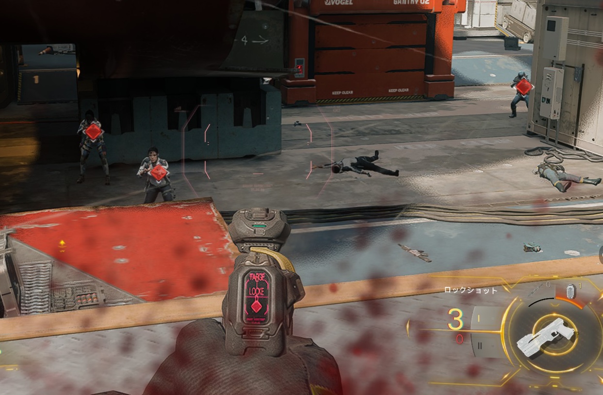 最大3人(OCで4人)の相手にロックオンができ、トリガーを押すことで順次相手を倒す事ができます。ロックオンの探知範囲は約50m、ロックオンにかかる時間は約0.9秒と遅いですがどの距離でもワンショットキルができます。ロックオンせずとも一様撃つことはできますが、腰撃ちのような散弾率となるので撃たないようにしたいです。