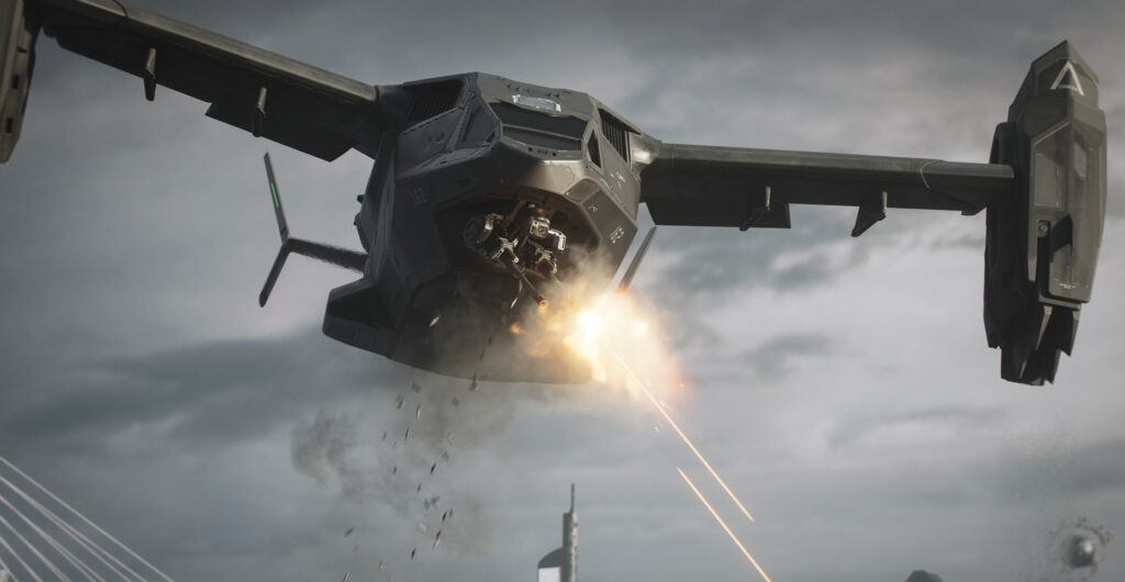 過去作にも度々登場している操作系ストリークでベータ版時点では最高コストのストリークになります。過去作で言うとガンシップというよりはBOCWの「VTOLエスコート」で、自身で機体を操作して移動しながら攻撃することができます。攻撃としては機関砲とミサイル6つ、ミサイルは自動的に攻撃してくれますが機関砲は自身で操作することができます。