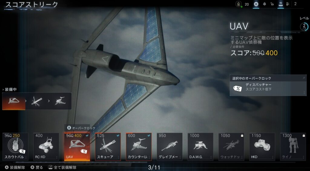 本作では新たにオーバークロック(OC)という装備やストリークが強化できるようになっています。レベルは最大3でキルやストリークによるサポートなどで上がっていきます。前作PERKにあったサポート系ストリークのコストを軽減する「ディスパッチャー」や、航空機の耐久値を上げる事ができるのでレベルを上げてカスタマイズしましょう。