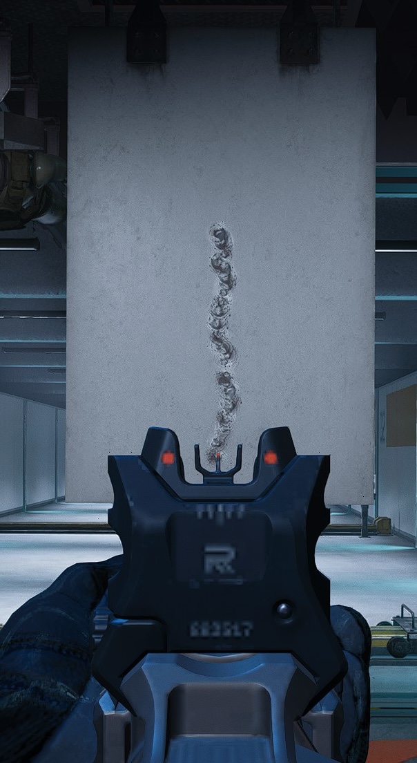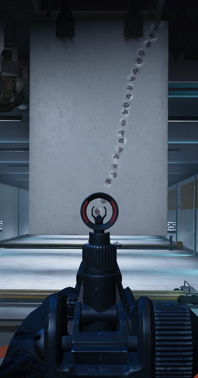 シーズン3のバトルパスにて追加される武器で、見た通り低反動なARになります。公式からの説明通り低反動で、水平反動がほぼない程小さいです。それに加えて垂直反動も低めになっているので、25mの的を数発だけなら反動制御無しで撃ち抜ける程です。